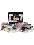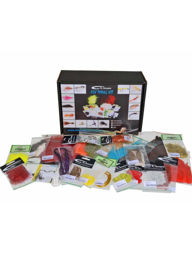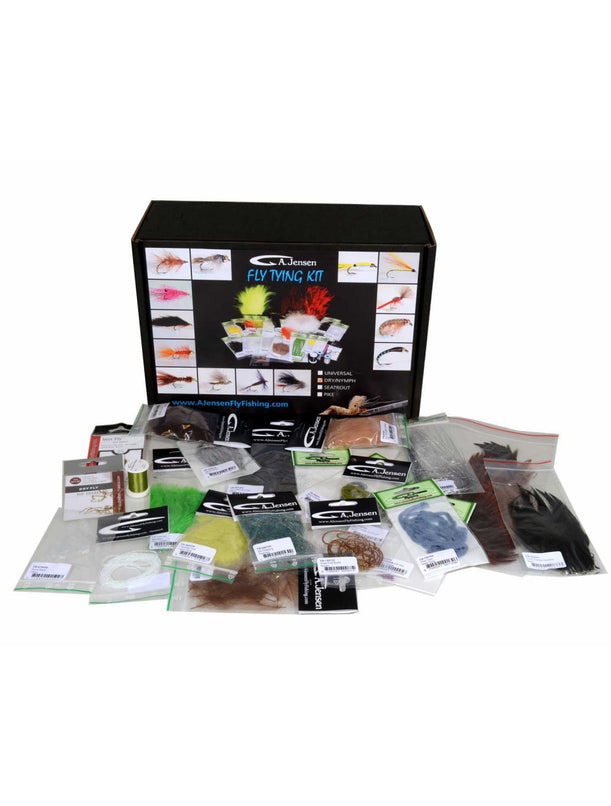 Hooks, Tying Thread, Cock Saddle, Hackles in 2x colours, Ice dubbing in 2x colours, Seatrout Supreme Dubbing, Seethrough Dubbing, Bead Chain Eyes, 3D Epoxy Eyes, Shrimp Eyes, Synthetic Baitfish Fibre, Hair Material, Polar Chenille, Cactus Chenille, Flashabou, Craft Fur in 6x colours, Mylar Tubing, Scud Back, Rubber Legs and Zonker strips.