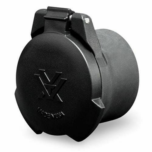 Vortex Defender Flip Cap, eyepiece 40-46mm. Virtually indestructible, this cap will fit snugly on nearly all Vortex Optics and features a snap flat spring that will keep your line of sight unobstructed.