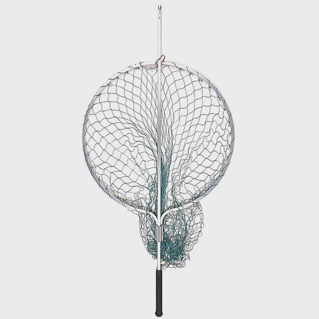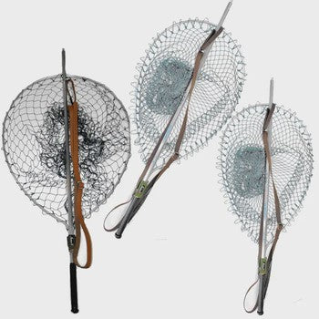 Sharpe's Gye Nets, first designed in 1928, have stood the test of time and have gained a reputation for durability and flexibility. The sliding handle and net frame are made from high tensile aluminum, with a cast alloy powder coated block. Supplied with Sharpe's own leather sling and knotless mesh.