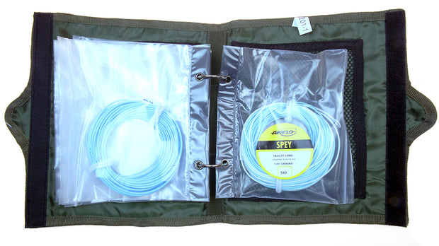 Keep your custom fly lines organized and controlled with Airflo's Shooting Head Wallet. This intelligent shooting head wallet will keep your custom fly line system under control with its sealable zip lock pockets. The heavy duty Cordura will give lifelong service and with its Velcro closure allows for easy expansion as your collection of heads increases. Airflo Shooting Head Wallet Features: