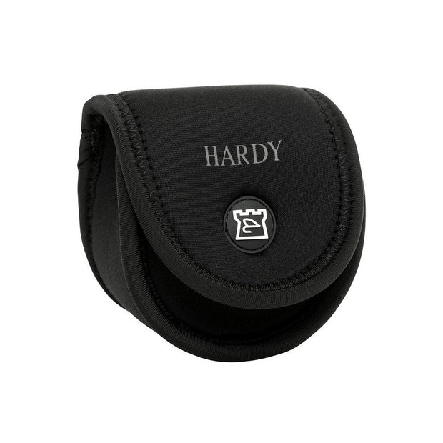 The Hardy Neoprene Reel Case is black in colour and adorned with the famous Hardy logo.