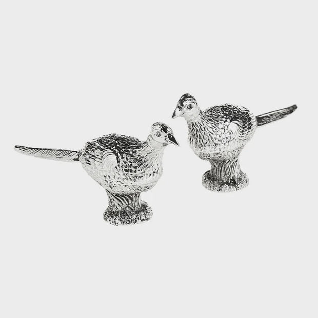 Cast in pewter then rhodium plated to give them a nice shiny antiqued finish.
