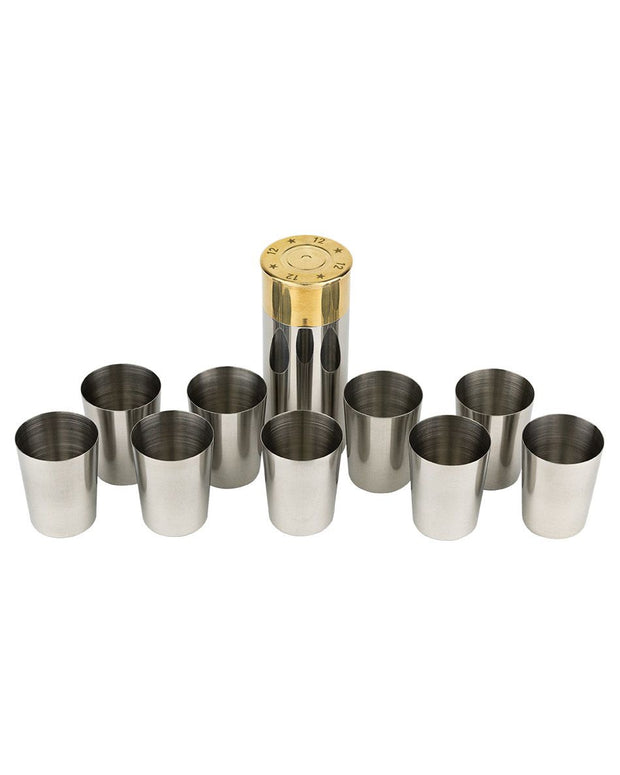 The stack of nine polished numbered cups in their cartridge shaped holder is the perfect set for the peg draw at the beginning of a shoot day. Share a drink and enjoy your favourite tipple with a group of friends or family. The classic design and polished finish of the Jack Pyke Cartridge Cup Set will give your shoot day or dinner party a country style feel and atmosphere. Build your collection of countryside memorabilia and add a corkscrew, wine stopper or a hip flask from the Jack Pyke silverware collection. The set comes in a presentation box adding a touch of luxury to your gift.