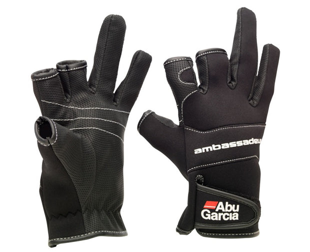 The Abu Garcia 'ambassador' stretch gloves have half fingers on the thumb, index and middle finger for optimum dexterity and they are made from neoprene for keeping you warm when fishing in the cold.