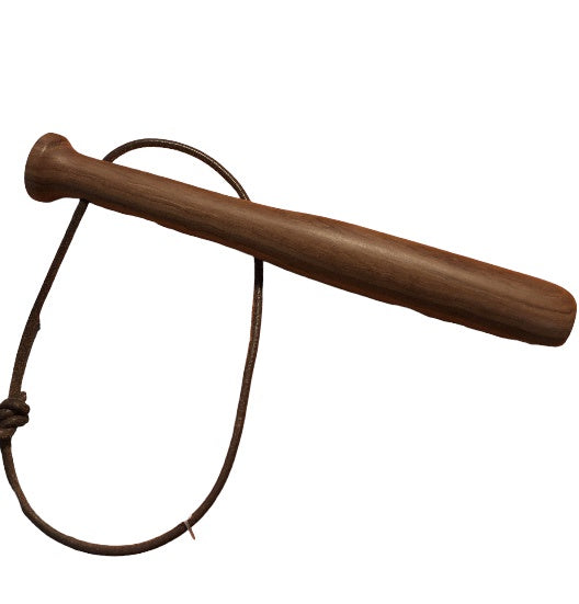 Lovely little pocket size wooden priest with weighted head and leather wrist strap.