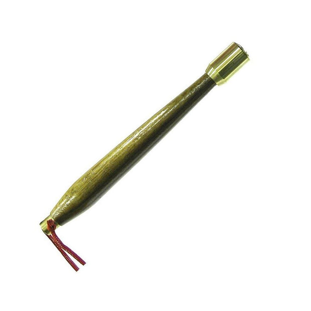 6" long with a brass head and 70g in weight. Cord wrist strap.