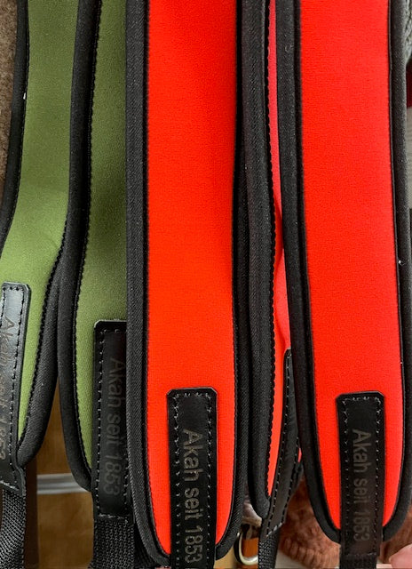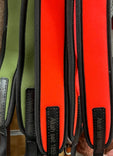 Olive green or orange, universal stretch neoprene rifle slings, equipped with anti-slip padding and 15% stretch for comfort. Black trim gives an attractive contrast.