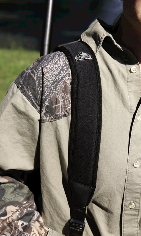 The Easy Rider sling, by Butler Creek, is constructed of a tough shock absorbing neoprene to cushion the weight of your firearm. Reduces fatigue, so you are ready to shoot comfortably. The sling features a solid backing of rubberized sharkskin to keep it securely on your shoulder, freeing your hands to carry other hunting gear.