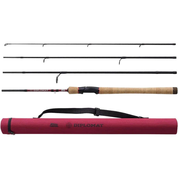The Abu Garcia Diplomat V2 Travel Spinning Rod is finished in a stylish black and red design and is available in a range of lengths and casting weights. All models are a 4 piece configuration except the 10’ 12-32g model which is a 5 piece.