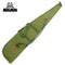 A high quality, thickly padded, rifle slip with a roomy front pocket with zipper and an additional safety pocket on the back. Adjustable shoulder strap and carry handles. Offered in desert sand and olive green canvas with artificial leather trim throughout.