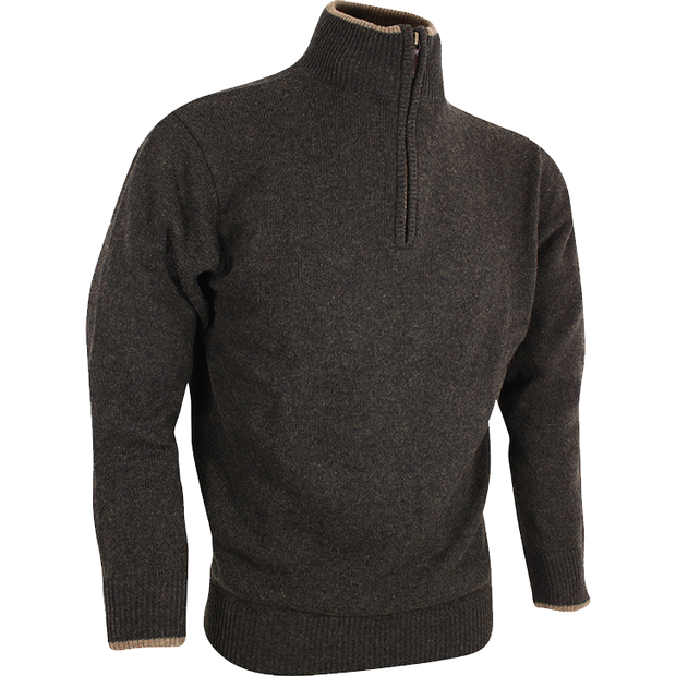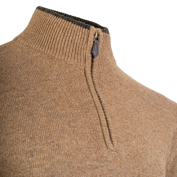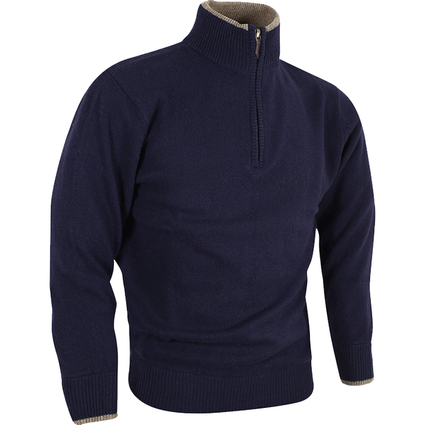 Gentlemen’s fitted quarter length neck zipknit pullover in various colours. Made from 100% medium weight lambs wool with a contrasting neck and arm cuff. Ribbed neckline, cuff and waist.