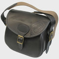 This leather loaders bag, from Napier, in dark havana brown, is made from the finest quality leather with solid brass fittings and an adjustable canvas non-slip shoulder sling. It is made to hold 125x cartridges comfortably. The brass hinged loaders flap closure makes it quick and easy to access. This bag can also be worn in reverse with the flap left open - owing to the quick load compartment for 8x pairs of shells. Loading becomes simple and fast.