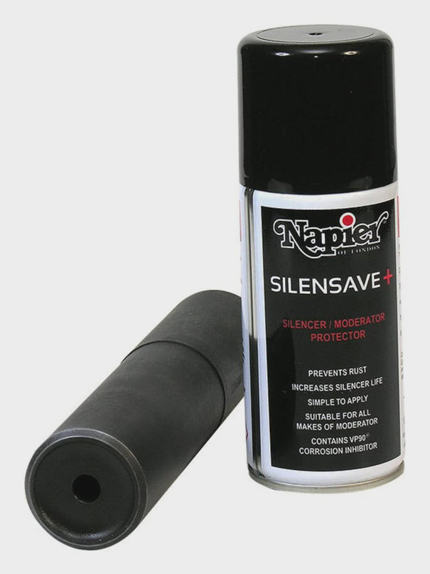 Simple, effective chemical spray that is applied directly into either end of the moderator prior to storage. Specially formulated and dispensed with a very low pressure aerosol that creates a mist within the can, ensures that a very fine but even coating covers all of the internal surfaces and baffles. This contains Napier's VP90 corrosion inhibitor amongst other compounds and is carried by a specific solvent that evaporates leaving just the finest coating behind. On the first firing, after application, the extreme and immediate heat bonds the chemical to the metal surfaces almost like a ceramic coating, so when used regularly this simply prevents the metals from corroding.